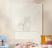 L'eleganza e la tranquillità di un gatto in posizione seduta in questo disegno minimalista. Un'opera d'arte astratta moderna che simboleggia il portamento, la grazia e il fascino tranquillo della presenza felina.