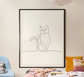 Disegno lineare minimalista di un gatto in posizione seduta | Modern Ab poster
