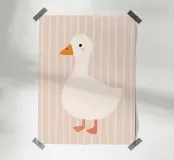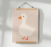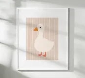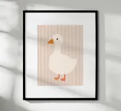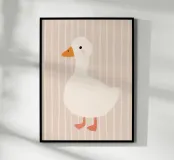 Simple, gentle, and effortlessly charming, this minimalist art print features a sweet white goose standing against a soft striped neutral background. The clean composition and muted palette create a calm, airy feel that fits beautifully into modern children’s spaces. Perfect for nurseries, baby rooms, or Scandinavian-inspired interiors, this print brings warmth, softness, and timeless simplicity to any wall. A serene statement piece that blends modern minimalism with cozy storybook charm.