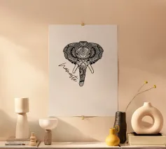 Questo disegno raffigura un maestoso elefante, creato in un affascinante aspetto mandala. I motivi dettagliati e le linee simmetriche conferiscono all'elefante un aspetto complesso e armonioso che affascina immediatamente l'osservatore. La tavolozza dei colori, con toni freddi di blu e verde, aumenta l'effetto calmante e allo stesso tempo dona una dolce vivacità all'ambiente. Ideale per chi apprezza la vicinanza alla natura, la spiritualità e i dettagli ornamentali, quest'opera d'arte aggiunge una profondità e un significato speciali a qualsiasi ambiente. ©di Monika Strigel