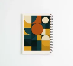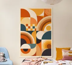 Un moderno design astratto che combina audaci forme geometriche con una tavolozza di colori caldi di ispirazione rétro. Perfetto per aggiungere un tocco di eleganza moderna di metà secolo a qualsiasi spazio abitativo o ufficio.