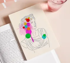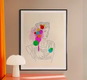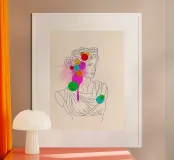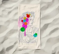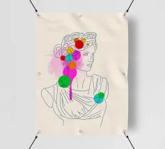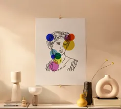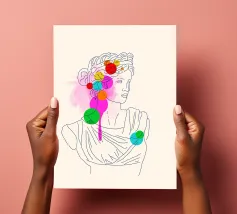 Una reinterpretazione contemporanea della bellezza antica. Quest'opera d'arte presenta la silhouette di una statua greca sovrapposta a una geometria minimalista e colorata, che dà nuova vita all'antichità classica. Perfetto per gli amanti della storia, dell'arte e degli interni raffinati.