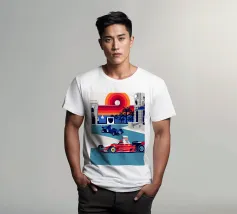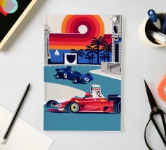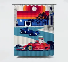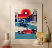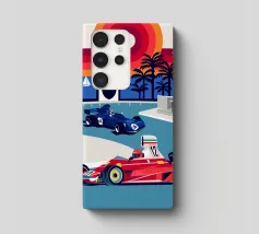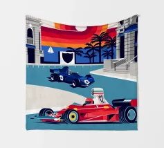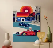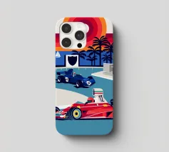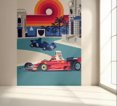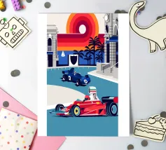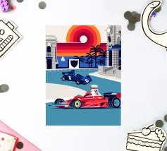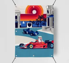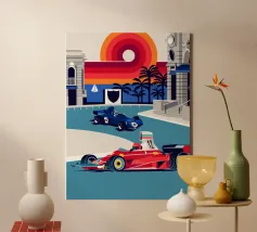 Formula Race Car Monaco Scene - Retro Graphic Design.
