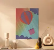 Allegro disegno vettoriale con una mongolfiera come simbolo di uno spirito ispiratore di avventura, libertà e sogni.