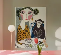 Tuffatevi in questo mondo stravagante, dove una vivace banda di scimmie funky si riunisce per un indimenticabile pomeriggio di poker! Sullo sfondo di una lussureggiante giungla tropicale, questi giocosi primati non si limitano a giocare a carte, ma sorseggiano cocktail colorati e si godono l'atmosfera estiva! Con ogni pennellata piena di energia e fascino, questo pezzo è perfetto per chiunque voglia aggiungere un tocco di divertimento e un tocco di colore al proprio spazio. Preparatevi a essere trasportati in questa giungla sfrontata ogni volta che la guardate!