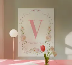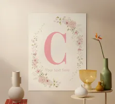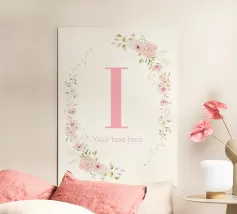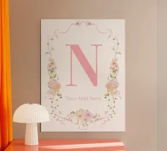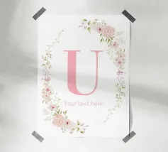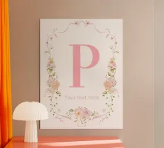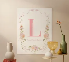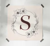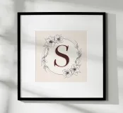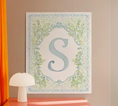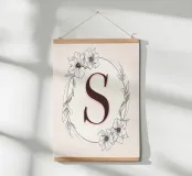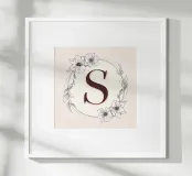Questo elegante monogramma floreale presenta una delicata corona di fiori e foglie che circonda la lettera "S". La palette di colori pastello e i dettagli intricati creano un design romantico e senza tempo, perfetto per qualsiasi arredamento.