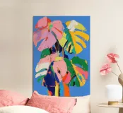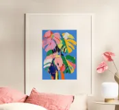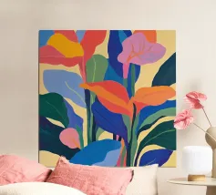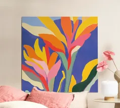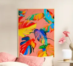Un'audace e colorata rivisitazione della classica foglia di monstera. Piena di movimento, energia e vibrazioni tropicali... questa è tutta gioia e colore.