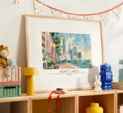 Questo vibrante poster in stile retrò cattura il lussuoso e affascinante skyline di Monte Carlo, Monaco. L'opera presenta i moderni grattacieli della città e il lungomare, con una barca che naviga sulle acque turchesi. La scena è incorniciata da alte palme ed eleganti edifici, il tutto reso in uno stile artistico dinamico e colorato. La tavolozza di colori caldi e solari evoca un senso di eleganza mediterranea e di vita di alto livello. Questo poster digitale di alta qualità (7000x5000 pixel, 300 dpi) è un'opera d'arte di prima qualità che celebra magnificamente la raffinatezza e la bellezza costiera di Monte Cà.