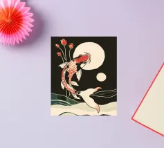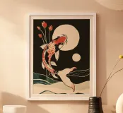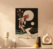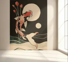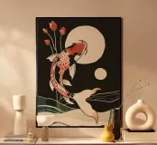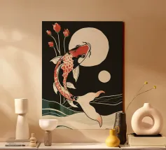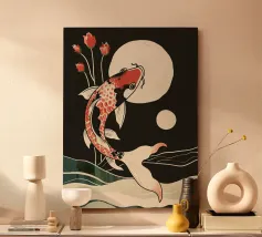 Arricchisci il tuo spazio con la stampa artistica incorniciata in legno "Moonlight Koi". Questa bellissima opera d'arte presenta un koi elegante sotto la luna, perfetta per chi ama design evocativi e naturali. Adatta per diverse stanze, questo pezzo di decorazione crea un'atmosfera serena e affascinante.