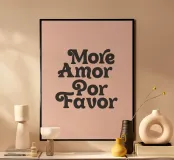 Aggiungete un tocco di fascino retrò e di amore al vostro spazio con questa accattivante stampa tipografica. La frase "More Amor Por Favor" è elegantemente resa in caratteri neri vintage, creando un contrasto sorprendente su uno sfondo rosa tenue. Questa espressione bilingue, che fonde inglese e spagnolo, aggiunge un tocco unico e romantico a qualsiasi ambiente. Perfetto per gli amanti dell'estetica vintage e per chi apprezza un pizzico di fascino multilingue. La delicata tonalità rosa crea un'atmosfera rilassante, rendendo questa stampa un'aggiunta ideale a camere da letto, soggiorni o qualsiasi spazio che necessiti di un tocco affettuoso.