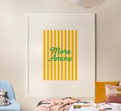 Parole semplici e calde che parlano al cuore: More Amore - "Più amore". Una frase classica dal fascino senza tempo, perfetta per camere da letto, spazi abitativi o angoli accoglienti che celebrano l'amore, la morbidezza e il romanticismo quotidiano.