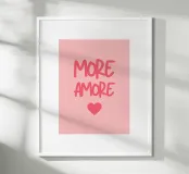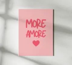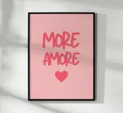 Aggiungi un tocco di amore e positività alla tua casa con il poster minimalista "More Amore". Perfetto per la camera da letto o il soggiorno, questo design semplice ma accattivante trasmette messaggi di affetto e ottimismo, rendendolo un regalo ideale per San Valentino o qualsiasi occasione speciale.