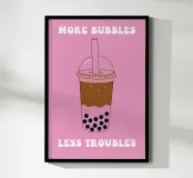 Add a splash of peace and playfulness to your space with this bubbly design. “More Bubbles Less Troubles” brings a lighthearted charm that fits perfectly in bathrooms, laundry rooms, or any cozy corner that needs a dose of calm and cheer.