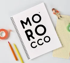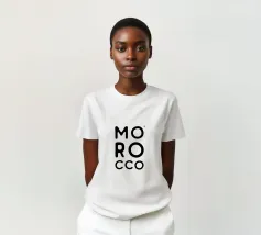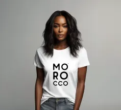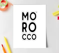 Adoro andare in Marocco. Adoro viaggiare per il mondo. Adoro visitare le città, le montagne e il deserto. Tipografia in nero e bianco (trasparente). È possibile cambiare il colore dello sfondo. Poster tipografico minimalista realizzato da un viaggiatore.