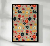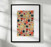 Questo motivo vivace e giocoso combina forme floreali astratte, cerchi ed elementi organici in colori vivaci come il rosso, il blu, l'arancione e il giallo su uno sfondo beige neutro. La disposizione delle forme crea un'estetica armoniosa ma dinamica, moderna e nostalgica al tempo stesso. Con un tocco di fascino retrò, questo disegno è perfetto per tessuti, carta da parati, cancelleria o accessori per la casa. I colori contrastanti e la composizione creativa rendono questo motivo un richiamo visivo che irradia allegria ed energia.