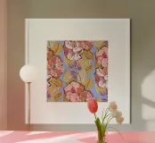 Adornate il vostro spazio con questo accattivante poster a motivi floreali di ispirazione Art Nouveau. Il poster presenta fiori stilizzati nei toni del rosa, dell'arancione e del bianco, intrecciati con foglie dorate e viola riccamente dettagliate, il tutto su un morbido sfondo blu. Le linee intricate e le forme organiche sono caratteristiche del movimento Art Nouveau e conferiscono un'eleganza senza tempo e un sofisticato fascino botanico a qualsiasi ambiente. La nostra riproduzione digitale vanta un'incredibile risoluzione di 7000x5000 pixel a 300 dpi, che garantisce la resa di ogni dettaglio intricato e di ogni tonalità vibrante con una chiarezza mozzafiato.