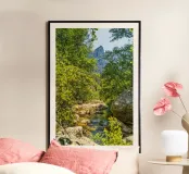 Transform your space with the calming beauty of this stunning poster featuring a crystal-clear stream flowing through a scenic mountain landscape. The gentle rush of water over smooth stones, framed by lush greenery and towering peaks, creates a peaceful atmosphere that invites relaxation and tranquility. Perfect for nature lovers, adventurers, and those who seek a touch of the outdoors in their home, this artwork brings a breath of fresh air to any room. Let the serene charm of this mountain stream infuse your space with a sense of calm and natural beauty.