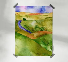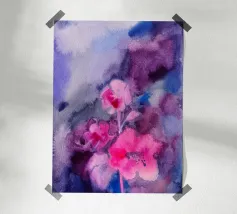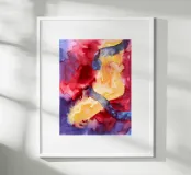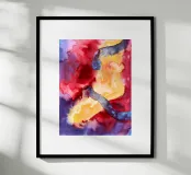 etween Movement and Instinct è un acquerello astratto in cui le forme fluide rivelano una scena nascosta: una gamba intrecciata con due forme serpentine. La composizione fonde corpo e movimento, istinto e trasformazione. I rossi e i gialli caldi contrastano con i blu freddi, creando una vivida tensione tra energia e calma. Un'opera poetica che invita a riflettere sull'intuizione, sul potere e sul rinnovamento.
