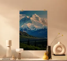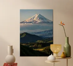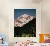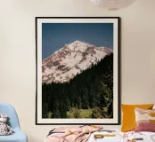Stampa artistica di alta qualità con cornice in legno, raffigurante il maestoso Monte Hood con paesaggio naturale innevato. Perfetta come decorazione per soggiorno o ufficio, questa stampa offre un tocco di tranquillità e natura alla casa, senza possibilità di personalizzazione. Realizzata con materiali sostenibili e produzione Europea certificata.