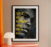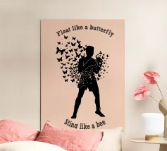 Poster von einem Originalgemälde in Mischtechnik. Muhammad Ali, Boxen, Champion, Schwergewicht, Boxkampf, Legende, Weltmeister, Kampf, Schmetterling, Biene, Zitat, schwarz, the greatest, Cassius Clay, Sport, Büro, Kinderzimmer, Wohnzimmer, Schlafzimmer, Küche