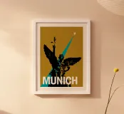 Poster retrò. Monaco di Baviera, colonna della vittoria, vintage, retrò, arte grafica, città, viaggio, illustrazioni, vacanze, aereo, pop art, ufficio, camera dei bambini, soggiorno, camera da letto, cucina, oro, turchese