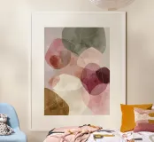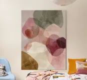 Translucent watercolor forms in dusty rose, taupe, olive, and ivory overlap in effortless balance. Elegant and timeless, this minimal abstract adds a refined touch to any contemporary or boho-chic space.
