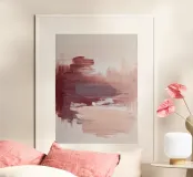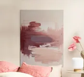 Una composizione astratta contemporanea realizzata con pennellate stratificate nei toni del bordeaux, del malva polveroso e del rosa cipria. L'interazione tra le tonalità rosa più intense e i toni neutri chiari crea equilibrio e una profonda tranquillità. La pennellata materica aggiunge tattilità, mentre la tavolozza sobria mantiene l'opera raffinata e versatile. La sezione inferiore più chiara ammorbidisce la composizione complessiva, evitando un effetto visivo pesante.