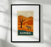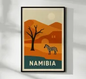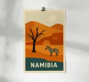 Un poster dai toni infuocati per una terra selvaggia. La Namibia, le sue dune arancioni, le zebre in libertà e gli alberi pietrificati prendono vita in una composizione suggestiva e stilizzata. Ideale per un arredamento potente, che combina natura estrema e bellezza grafica. Ogni curva racconta la storia dell'Africa.
