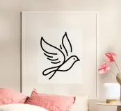 Questa line art raffigurante un uccello unisce l'amore per la natura a un design pulito e minimalista. L'uccello, nella sua espressione più semplice, simboleggia l'armonia e la libertà, rendendo quest'opera d'arte una scelta perfetta per spazi abitativi moderni e tranquilli.