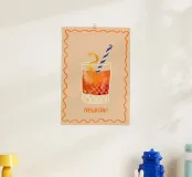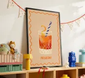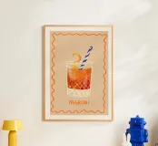 Questa elegante stampa artistica rappresenta un classico cocktail Negroni, perfetta per dare un tocco di stile al tuo soggiorno o bar. Realizzata su carta di alta qualità e incorniciata in legno, è un'opera d'arte unica per gli amanti dei cocktail e della cultura italiana.