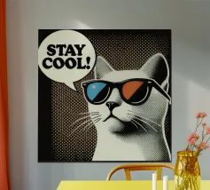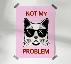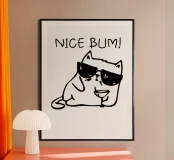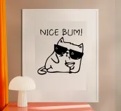 Un gatto dei cartoni animati con occhiali da sole se ne sta tranquillo con la frase "NICE BUM!" scritta sopra. L'illustrazione giocosa cattura un'atmosfera umoristica e rilassata.