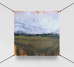 Riproduzione del dipinto originale di Eduard Warkentin. Uno schizzo a olio. Un tentativo di riprodurre il paesaggio con superfici astratte.