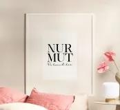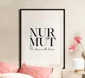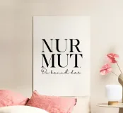 Porta un tocco di ispirazione nella tua casa con questa stampa artistica incorniciata in legno "Nur Mut" di BAINAI QUOTES. Perfetta per il soggiorno, lo studio o la camera da letto, questa opera d'arte stimola la positività e la determinazione in ogni ambiente.