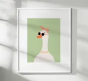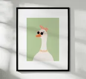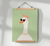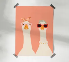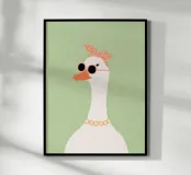 This stylish goose illustration brings playful elegance to any space. Featuring a graceful long-necked goose wearing round blush sunglasses and a patterned headscarf, this artwork blends vintage charm with a modern, minimalist feel. Perfect for nurseries, children’s bedrooms, or eclectic gallery walls, this fashionable goose print adds personality, humor, and a trendy statement to your décor. Beautiful displayed on its own or paired with coordinating animal prints for a cohesive and stylish collection.