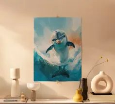 I delfini sono mammiferi marini intelligenti e amichevoli, noti per il loro comportamento giocoso e i forti legami sociali. Hanno un corpo liscio e affusolato, un muso a forma di becco e una pinna dorsale ricurva. I delfini sono eccellenti nuotatori e usano la loro potente coda per scivolare nell'acqua con grazia. I delfini vivono spesso in gruppi chiamati "baccelli" e si trovano negli oceani di tutto il mondo.