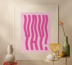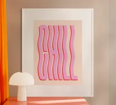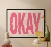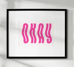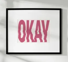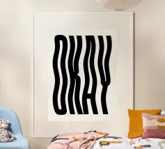 Minimalista ma espressivo, questo poster tipografico con la parola "OKAY" in un design a onde distorte conferisce un'estetica moderna a qualsiasi ambiente. I toni rosa tenui conferiscono un effetto calmante, mentre il carattere distorto crea dinamismo. Perfetto per case moderne, uffici o pareti di gallerie creative. Un vero e proprio richiamo per gli amanti dell'arte tipografica e dell'estetica minimalista.