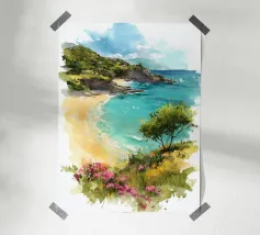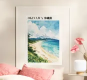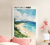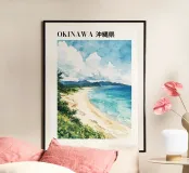 Il disegno "Okinawa" cattura la bellezza di una spiaggia di Okinawa, con morbidi elementi acquerellati e ispirati alla classica arte ukiyo-e. Ideale per chi sogna le coste giapponesi e l'estetica tradizionale!