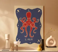 Scopri questa stampa artistica incorniciata in legno con un affascinante design di un polipo. Perfetta per la tua casa o come decorazione murale in ambienti marittimi. Un'aggiunta colorata e moderna per il tuo soggiorno, cucina o camera dei bambini.
