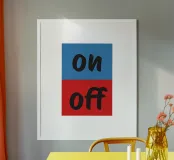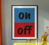 Aggiungi un tocco di stile moderno alla tua casa con questa stampa artistica incorniciata in legno "On Off". Perfetta per gli amanti del design contemporaneo, questo pezzo unico porta vivacità e personalità in qualsiasi ambiente.