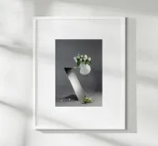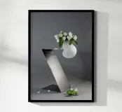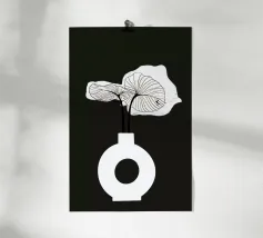 Stampa d'arte concettuale "Equilibrio precario"! Questa bellissima e avvincente fotografia cattura un vaso bianco liscio e rotondo che regge una vibrante felce verde, drammaticamente in equilibrio su un pesante blocco geometrico scuro inclinato. L'elevato contrasto e la tensione tra la natura organica e la geometria industriale creano una potente dichiarazione di equilibrio e fragilità. Arte da parete perfetta per spazi moderni, minimalisti e contemporanei. Ideale per un soggiorno, un ufficio o una casa in stile scandinavo. Equilibrio, Equilibrio, Arte concettuale, Felce, Pianta, Vaso rotondo, Geometrico, Scultura moderna, Minimalista, Con