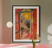 Finestra aperta "Orizzonti aperti: una vista piena di colori". poster con telaio in legno