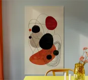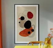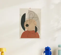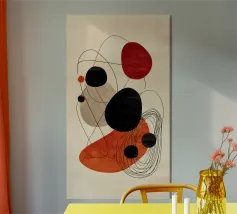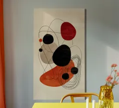 Una raffinata composizione astratta in cui forma, linea e spazio interagiscono in una tensione silenziosa. Forme morbide e organiche ancorano l'opera, mentre delicati percorsi lineari orbitano e si intersecano, suggerendo movimento, ritmo e forze invisibili in gioco. La tavolozza sobria e la sottile texture della superficie conferiscono all'opera una qualità calma e tattile che appare intenzionale e senza tempo.