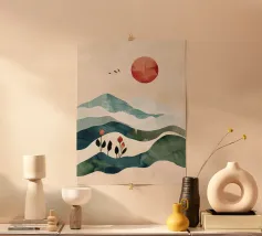 Boho Luna Sole Pianta Montagna Natura Astratta Yoga Caffè Arte