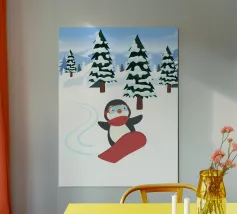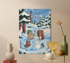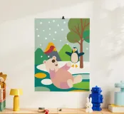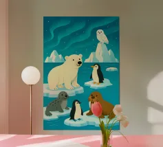 This illustration features a unique friendship between a bear and a penguin, full of warmth and joy.