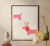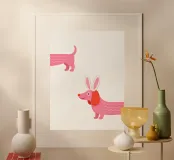 Scopri la vivace ed allegra stampa artistica di un Dackel (Bassotto) per la Pasqua. Perfetta per portare un tocco di divertimento nella tua casa, questa opera d'arte incorniciata renderà ogni stanza più vivace. Ideale per il soggiorno, la camera dei bambini o come regalo unico e originale in occasione di una festa.