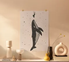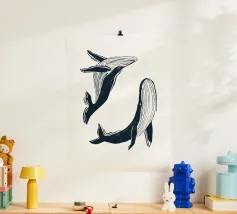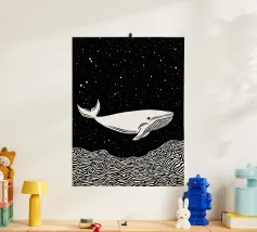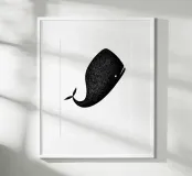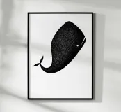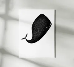 Ecco Otto, una balena gentile con una silhouette perfettamente paffuta e un corpo avvolto da vorticose texture disegnate a mano. La sua piccola coda si arriccia come un nastro, aggiungendo un giocoso rimbalzo alla sua lenta e sognante deriva. Un unico occhio rotondo e un sorriso sottile gli conferiscono un'aria di tranquilla saggezza, come se avesse visto mille tramonti sotto il mare. Con le sue forme nere come l'inchiostro e le sue curve morbide, Otto è sereno, dolce e un po' magico!