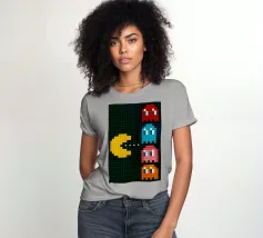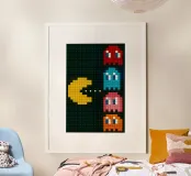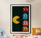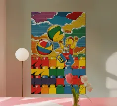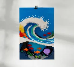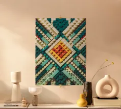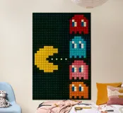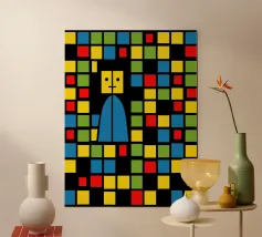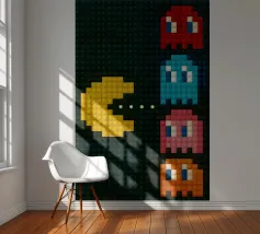 Un iconico classico da sala giochi reinterpretato: PAC-MAN e i famosi fantasmi appaiono qui come un mosaico LEGO con borchie dall'aspetto plastico. Questo colorato motivo retrò combina la nostalgia del gioco con la moderna cultura pop: un murale perfetto per i nerd, i giocatori, gli appassionati di LEGO e tutti coloro che ricordano gli anni '80. Giocoso, elegante, senza tempo.