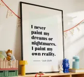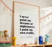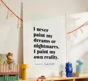 Porta un tocco di ispirazione nel tuo spazio con questa stampa artistica incorniciata "Paint Reality" di typed. La citazione di Frida Kahlo invita a riflettere sull'importanza di creare la propria realtà, rendendola perfetta per chi ama l'arte significativa e motivazionale. La sua dimensione compatta di 10 x 15 cm la rende ideale per ogni angolo della casa, che sia in soggiorno, nella camera da letto o anche in un ufficio. Giocosa e sofisticata, questa opera d'arte è un ottimo regalo per amici, familiari o anche per te stesso. Ogni sguardo a questa stampa stimolerà la tua creatività.