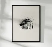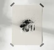 Paint splatters with shapes and lines in black and white poster