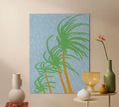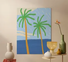 Due palme. Motivo estivo dipinto a mano.